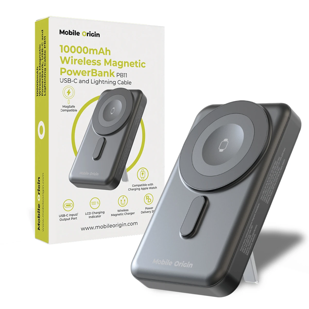 - 10 000mAh Wireless Magnetic PowerBank, USB-C and Lightning Cable PB11