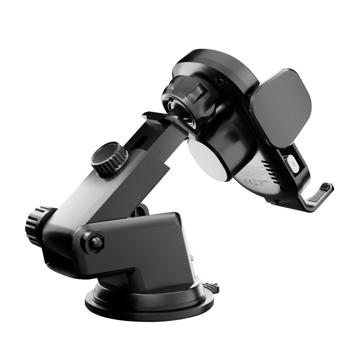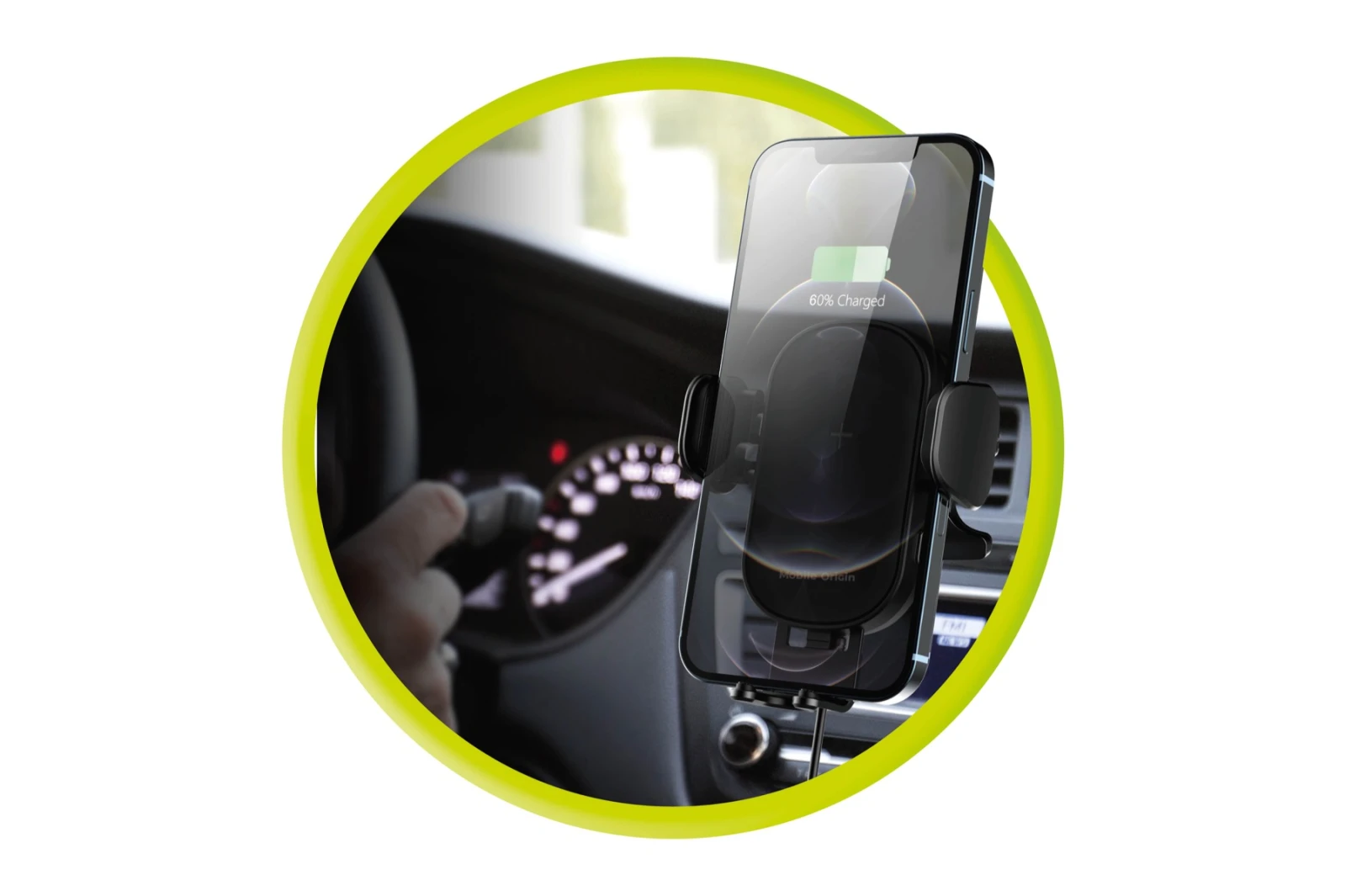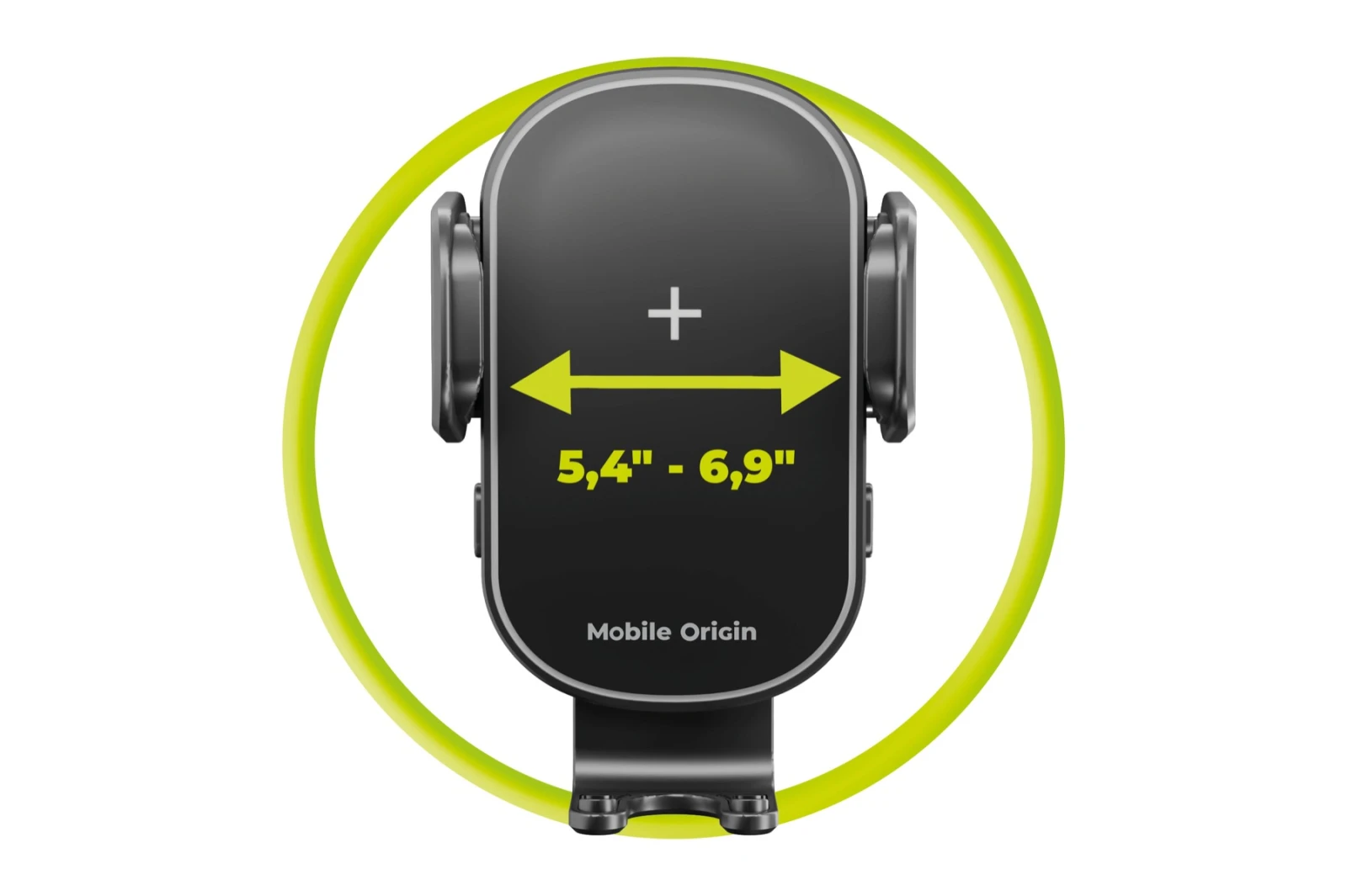 Jednoduše stiskněte tlačítko na boku – dvě ramena se otevřou a vy s lehkostí umístíte svůj Qi kompatibilní telefon. Nabíjení začne okamžitě a ramena se automaticky uzamknou pro bezpečné držení. Chcete telefon vyndat? Stačí znovu stisknout tlačítko a ramena se uvolní – technologie, která myslí na váš komfort!