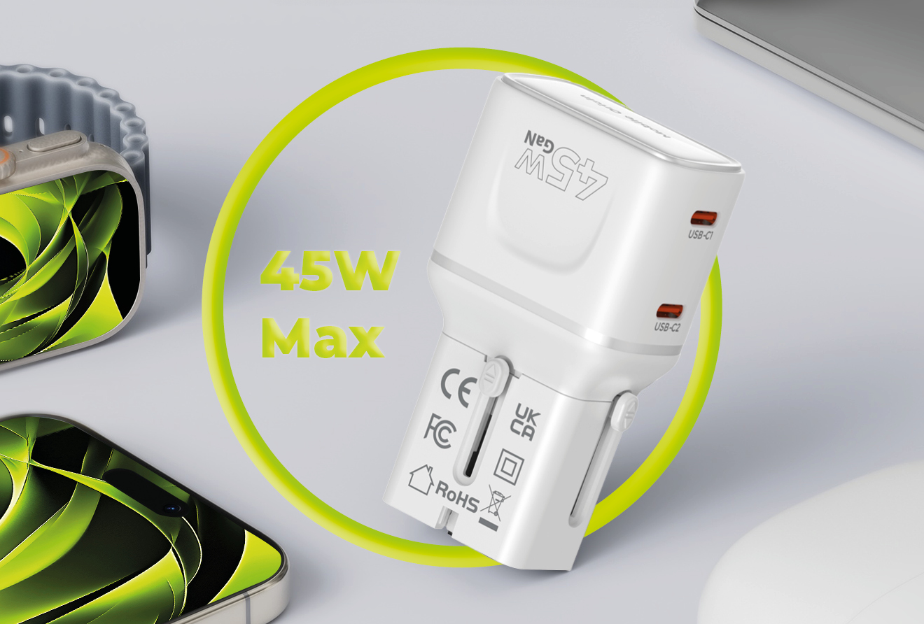 GaN (Gallium Nitride) technologie umožňuje efektivnější a rychlejší nabíjení oproti tradičním adaptérům. S maximálním výkonem 45W dokáže rychle a bezpečně nabít vaše zařízení, ať už se jedná o smartphone, tablet nebo notebook.