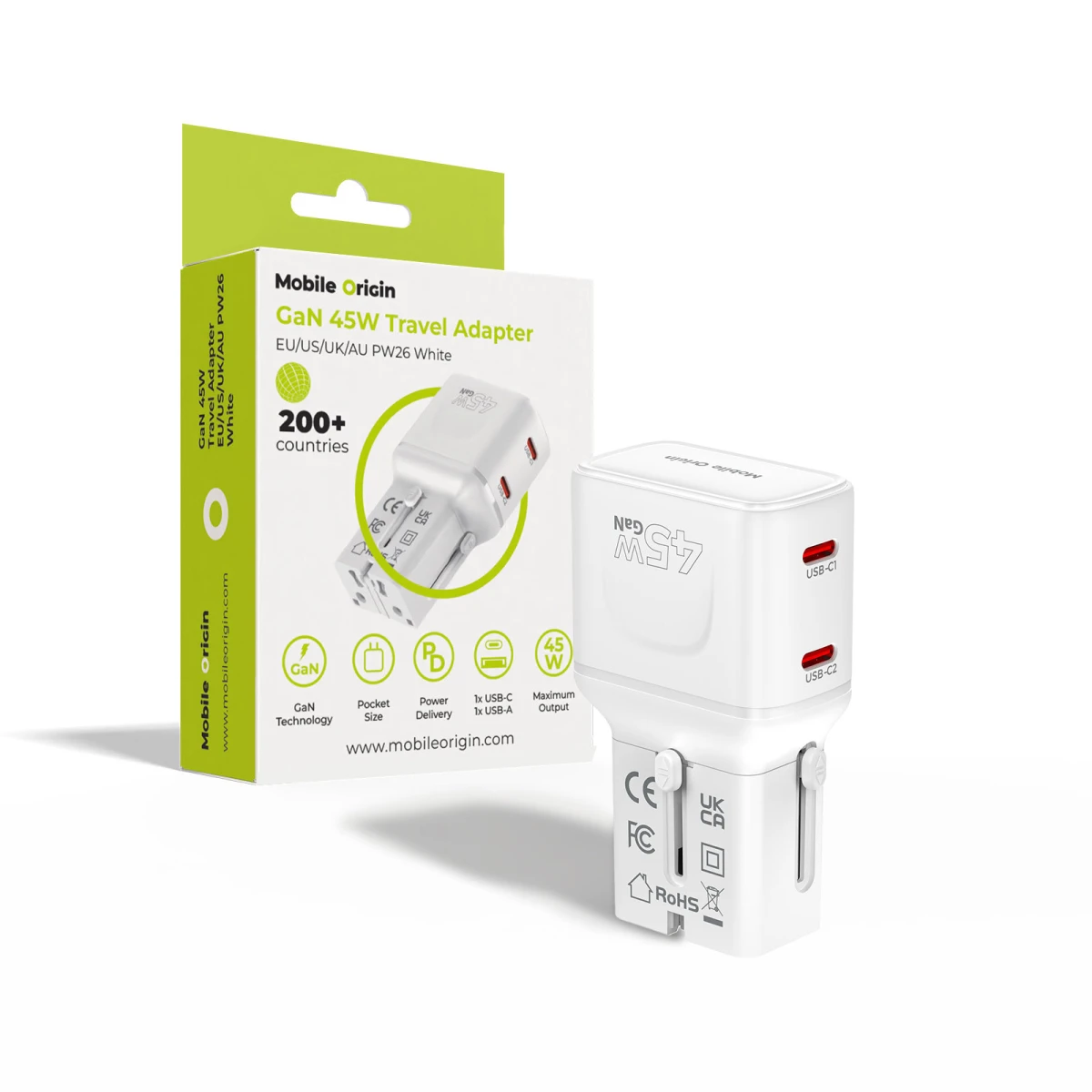 Cestujte bez omezení a udržujte svá zařízení vždy nabitá s revolučním Mobile Origin GaN 45W Cestovním adaptérem. Tento kompaktní a výkonný adaptér je navržen pro moderní dobrodruhy, kteří potřebují spolehlivé nabíjení kdekoliv na světě.
