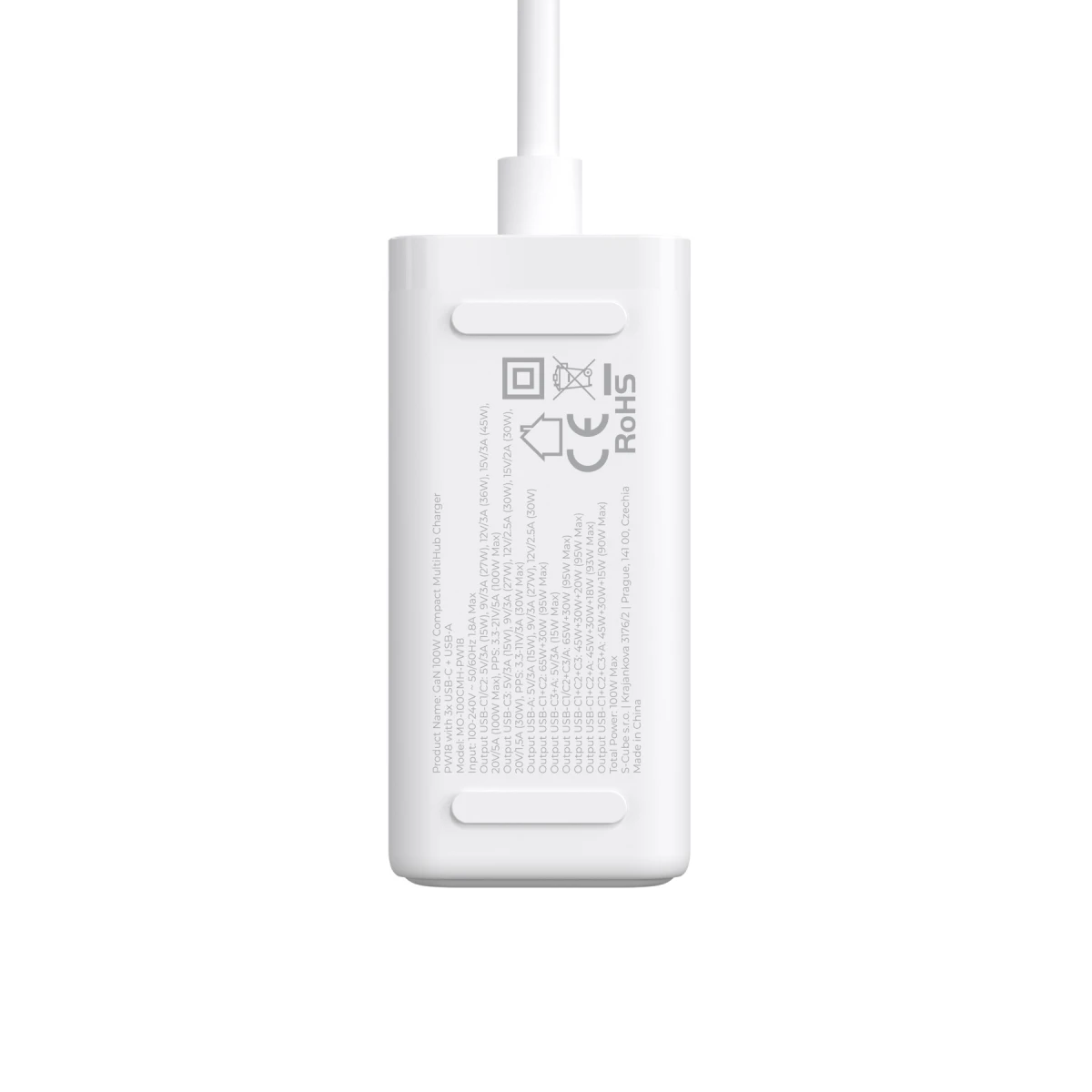 - GaN 100W kompaktní MultiHub nabíječka PW18 s 3× USB-C + USB-A