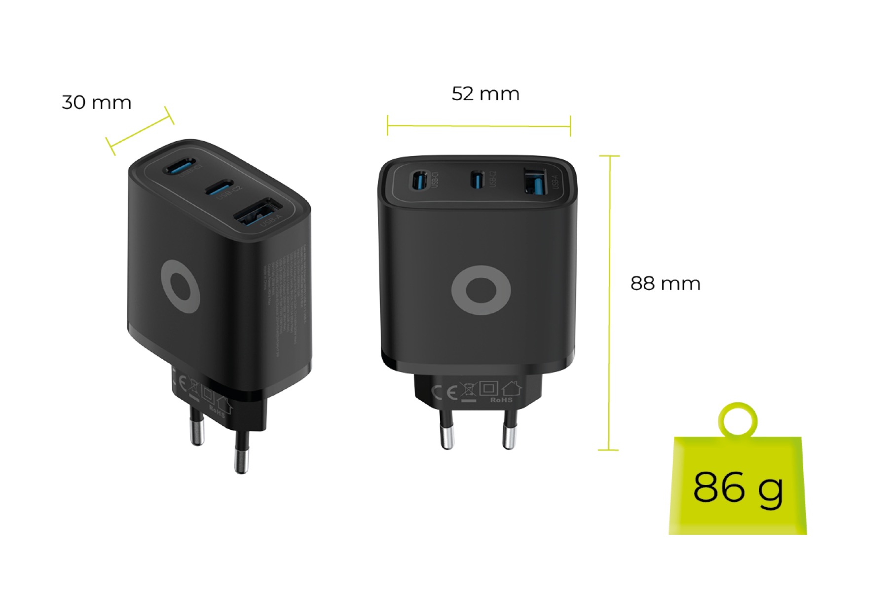 Tento kompaktní adaptér o rozměrech 88 x 52 x 30 mm a hmotnosti pouhých 86 g se snadno vejde do vaší tašky nebo kapsy například při cestování.
