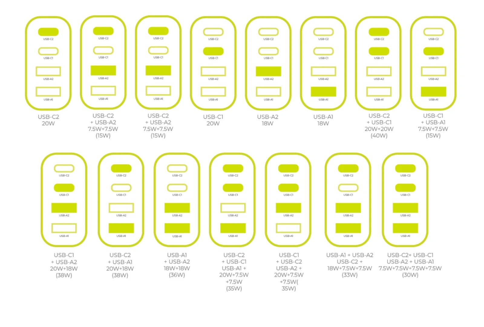 USB-A1/A2+(USB-C1+USB-A1)/(USB-C2+USB-A2):