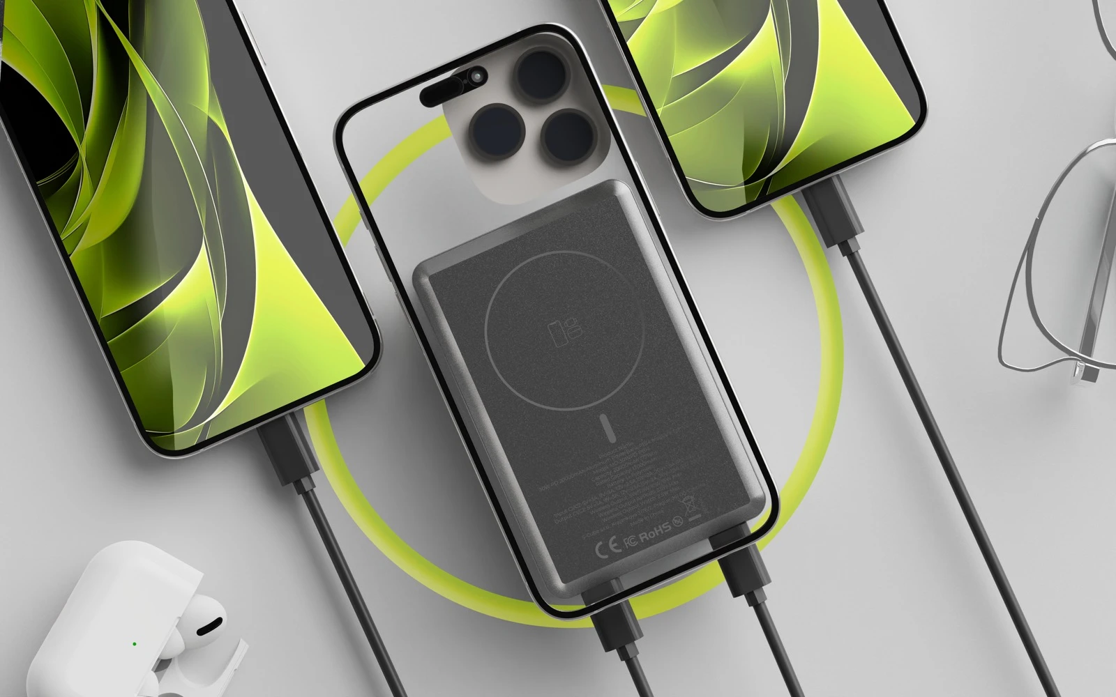 Kromě standardního MagSafe nabíjení pro iPhone (až 15 W) je PowerBanka vybavena technologiemi pro bezdrátové nabíjení chytrých hodinek Apple Watch (2.5 W) i sluchátek AirPods (2.5 W), takže vám na cestách stačí jediné zařízení pro celou vaši výbavu.
