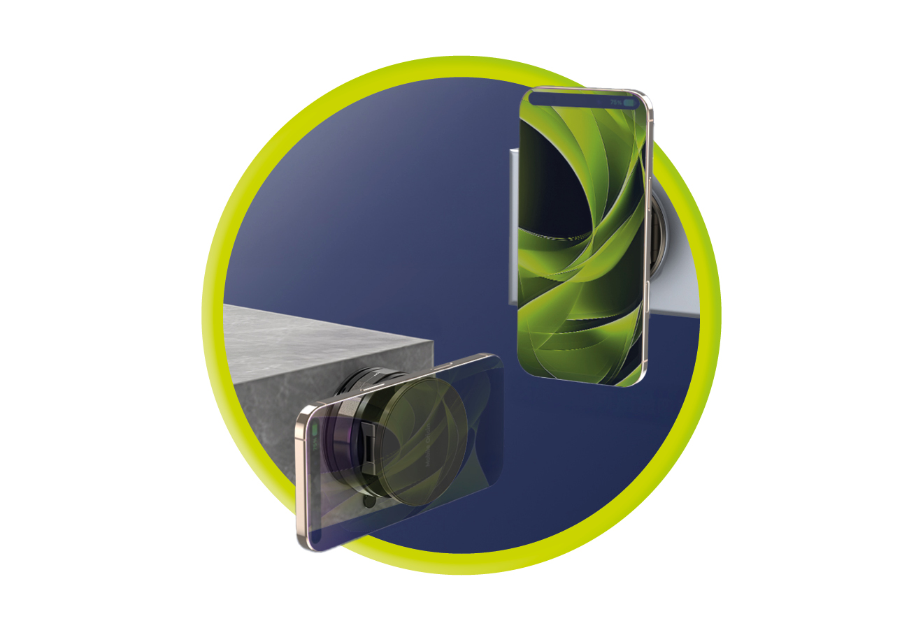 Vestavěný magnet zajišťuje pevné a stabilní držení vašeho zařízení, ať už jste doma nebo v autě. Navrženo pro telefony iPhone s technologií MagSafe nebo s magnetickým kroužkem pro ostatní zařízení.