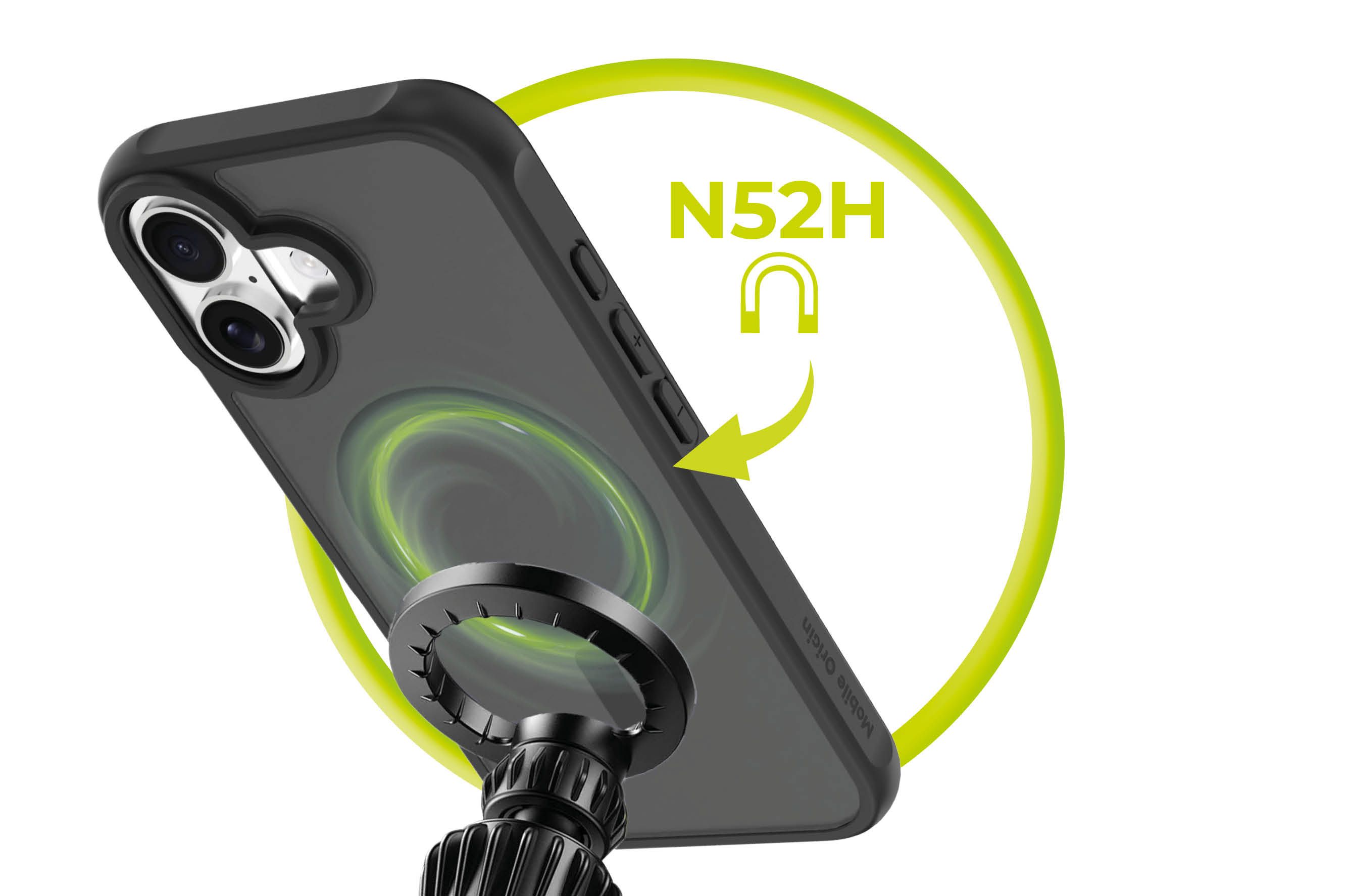 Magnety jsou umístěny s maximální přesností – pouzdro se k nabíječce připevní s jasným cvaknutím a drží pevně i při pohybu. Funguje s magnetickými držáky do auta, peněženkami i stojany.
