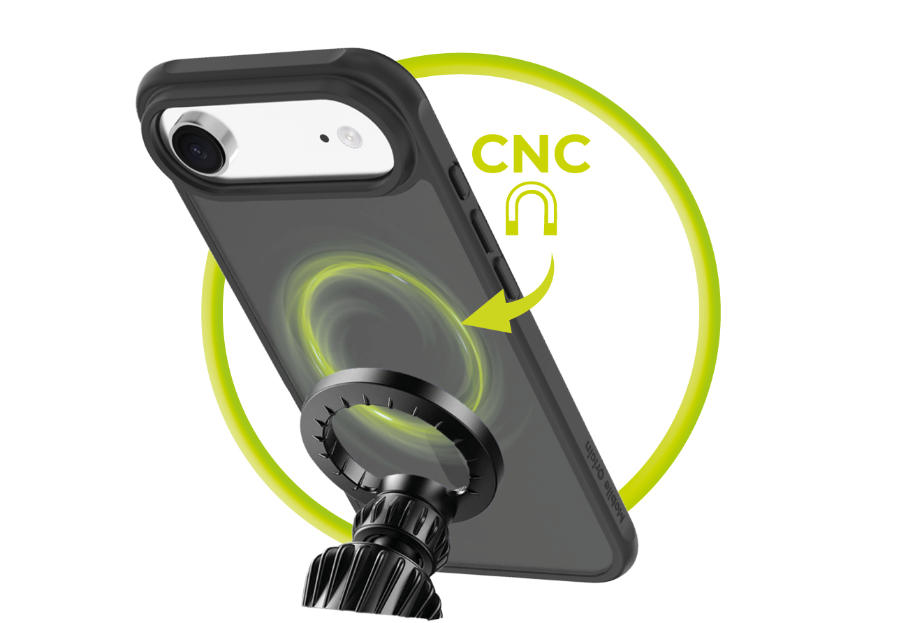 Magnety jsou umístěny s maximální přesností – pouzdro se k nabíječce připevní s jasným cvaknutím a drží pevně i při pohybu. Funguje s magnetickými držáky do auta, peněženkami i stojany.