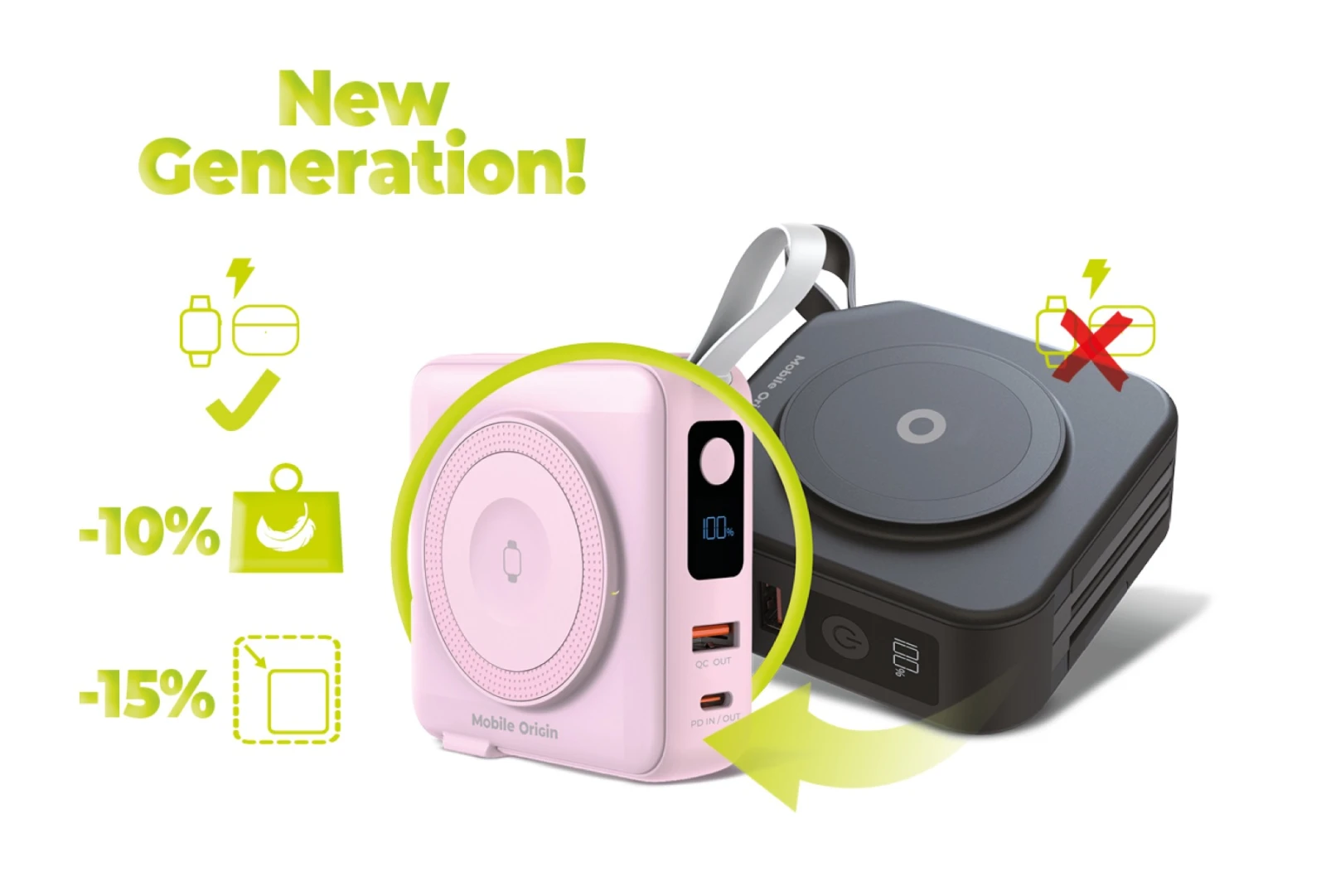 Představujeme novou generaci cestovní PowerBanky je lehčí o 10% a menší o 15% – ideální nově pro chytré hodinky Apple Watch a sluchátka Apple AirPod. Starší model s omezeným nabíjením již patří minulosti!