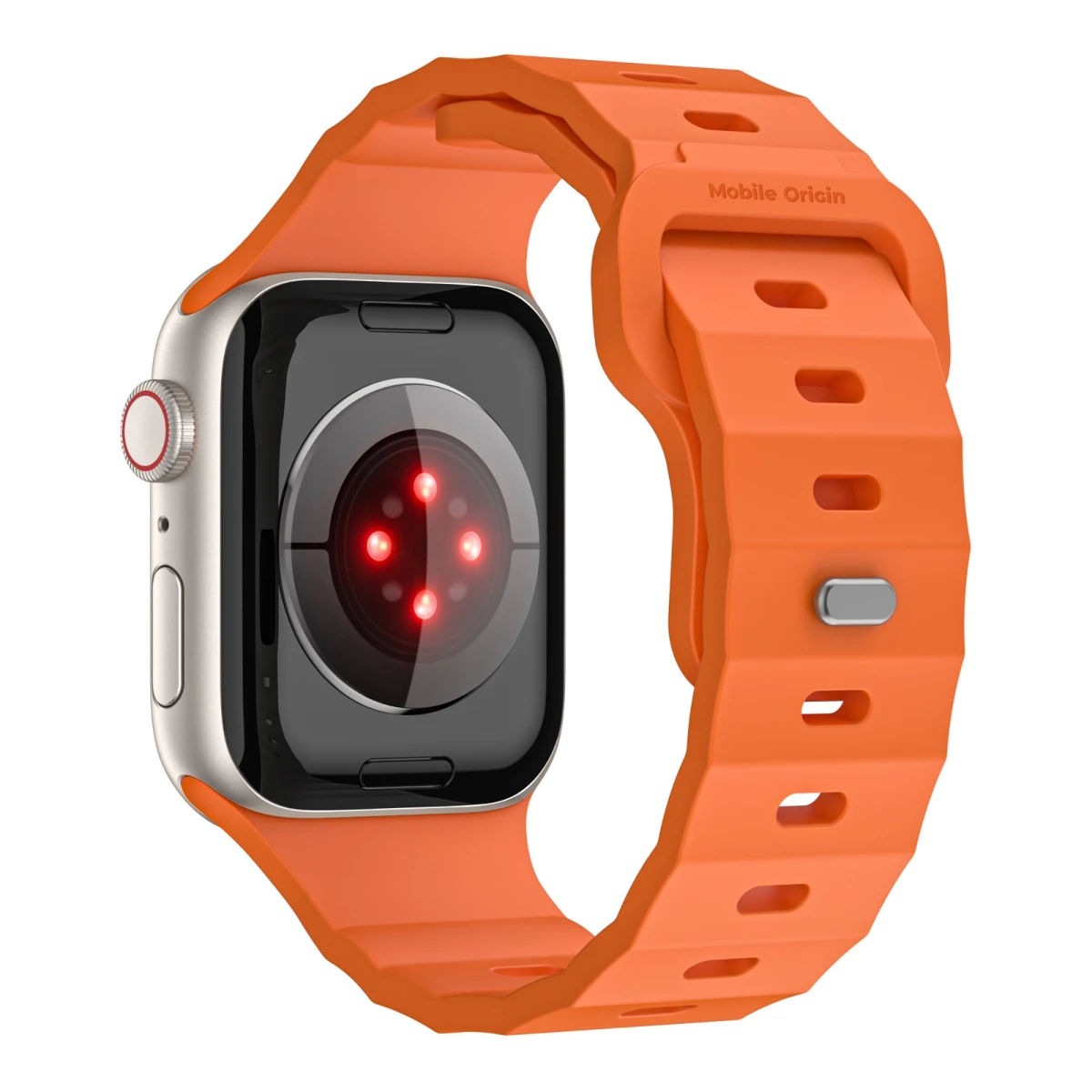 Fluorokaučukový řemínek s kovovou pojistkou nabízí pohodlí, styl i bezpečné uchycení při sportu i běžném nošení. Odolný a prodyšný materiál je příjemný na kůži a vhodný pro zápěstí do 200 mm. Kompatibilní s Apple Watch 44–49 mm.