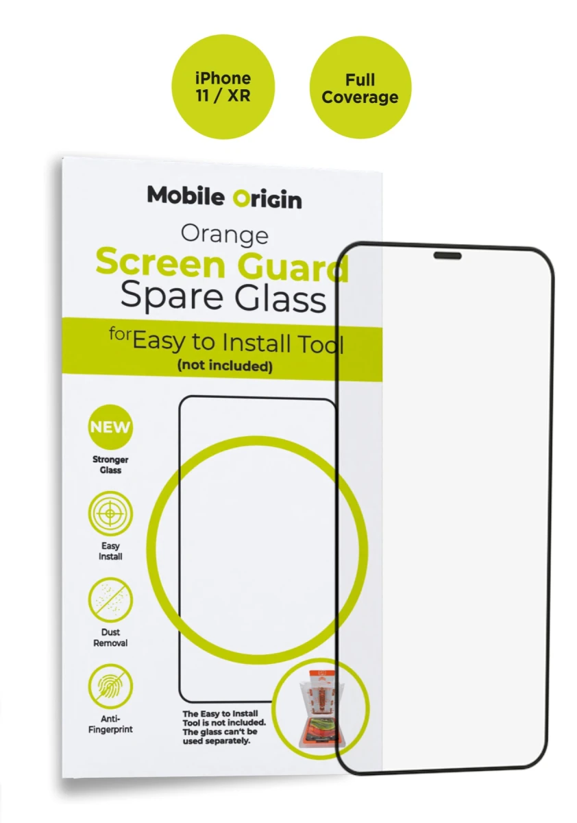 Náhradní pevné tvrzené sklo s tvrdostí 9H, odolné proti nárazům a s oleofobní úpravou proti otiskům prstů. Navrženo pro přesnou instalaci pomocí aplikátoru Orange Line Easy Applicator Kit (není součástí balení).
