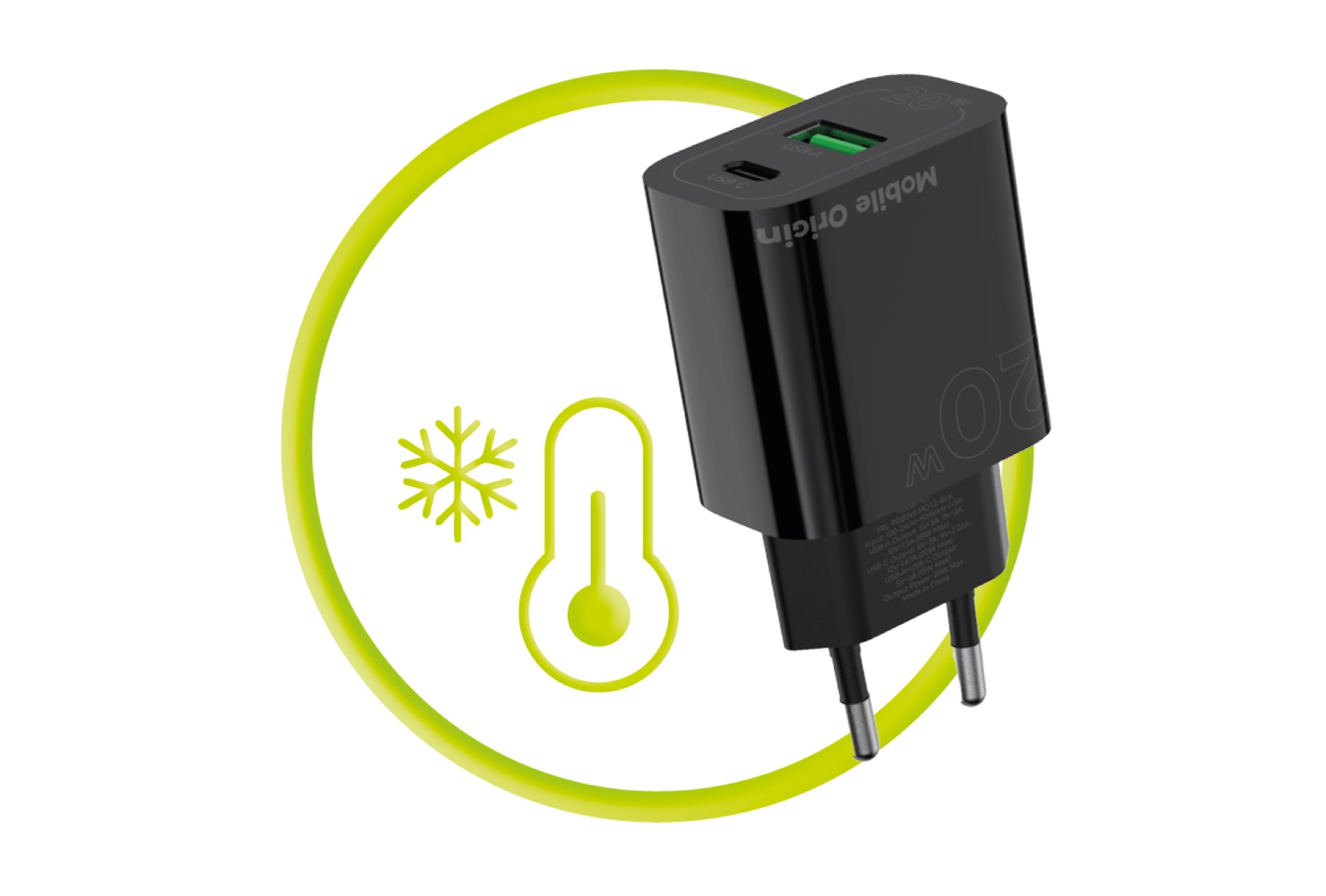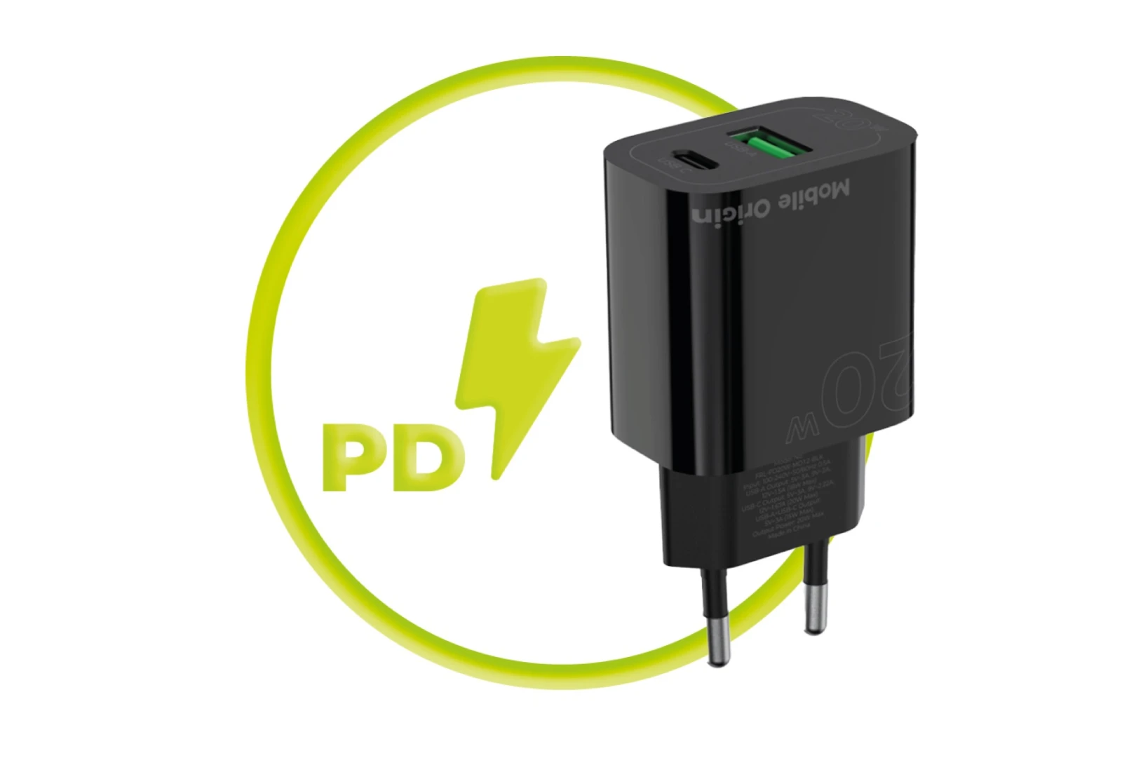 20W adaptér využívá technologii PD (Power Delivery), která umožňuje rychlejší a efektivnější nabíjení. Dynamicky upravuje výstupní výkon podle potřeb zařízení a zajišťuje optimální rychlost nabíjení.