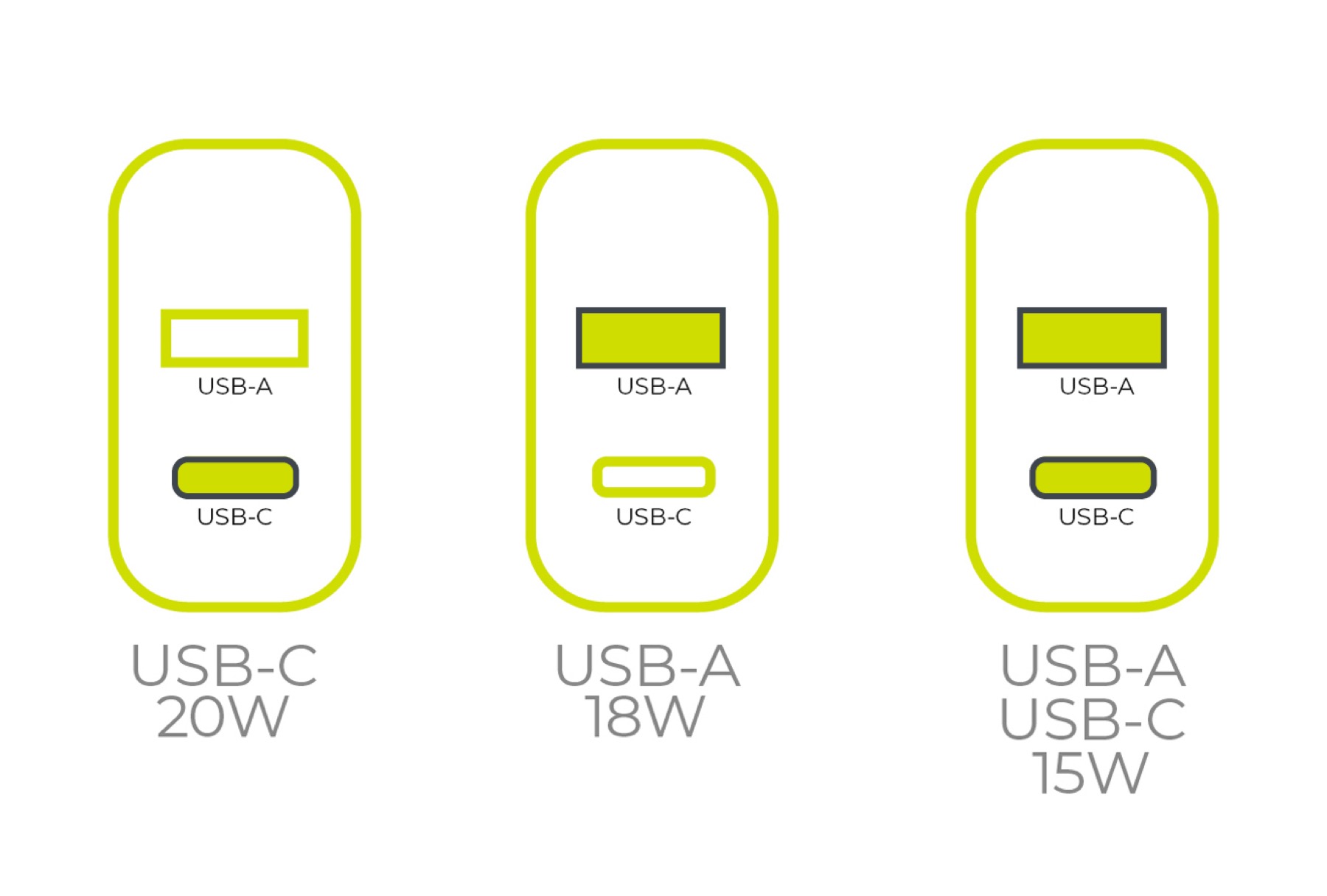 Nabíjejte rychle dvě zařízení současně na cestách díky vysokorychlostním USB-C a USB-A portům navrženým pro maximální efektivitu.
