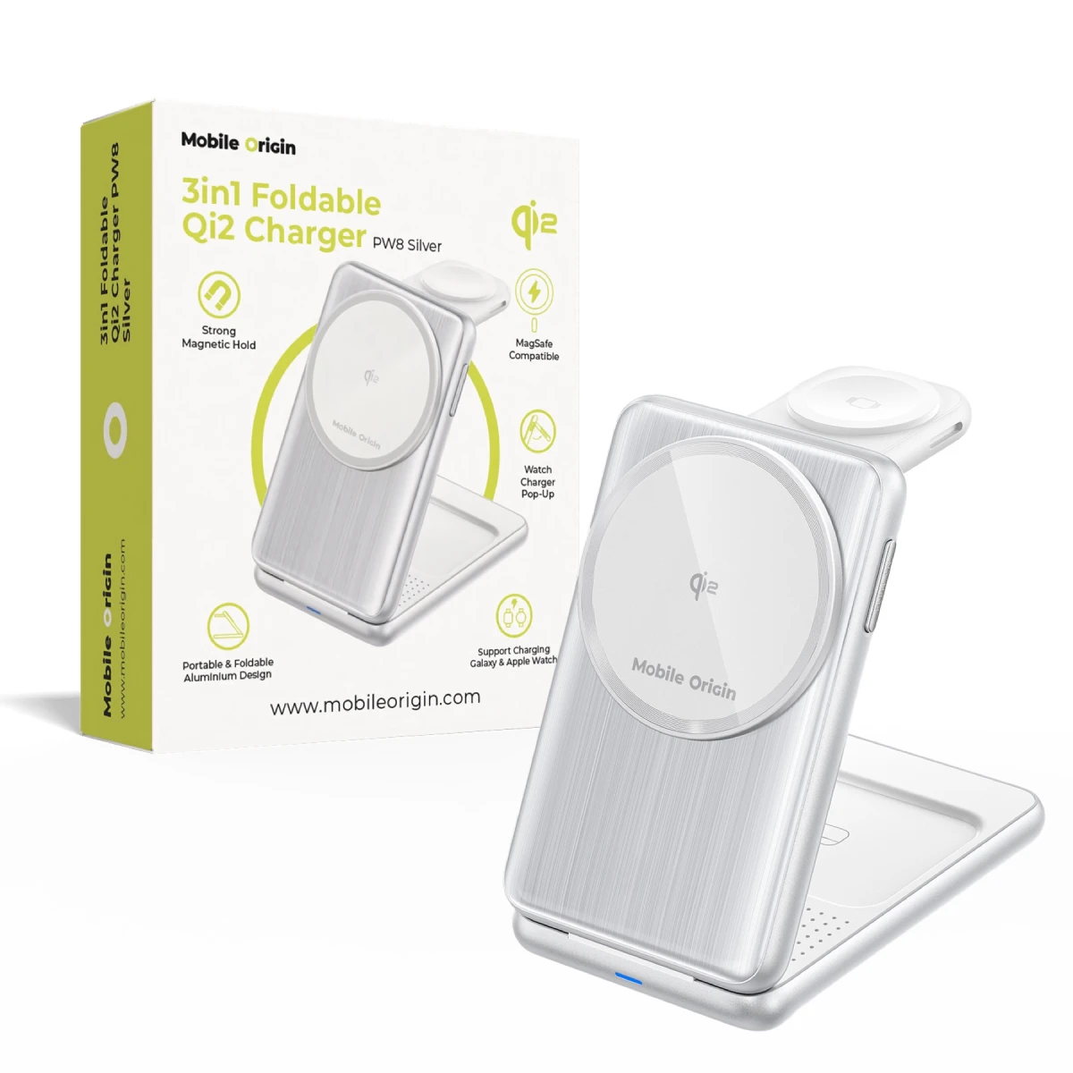 Nabíjecí stanice umožňuje současné bezdrátové nabíjení telefonu s MagSafe, chytrých hodinek Apple Watch a sluchátek. S možností výstupu 5W, 7,5W, 10W a 15W se PW8 automaticky přizpůsobí potřebám vašeho zařízení — rychle, bezpečně a bez nutnosti kabelů.