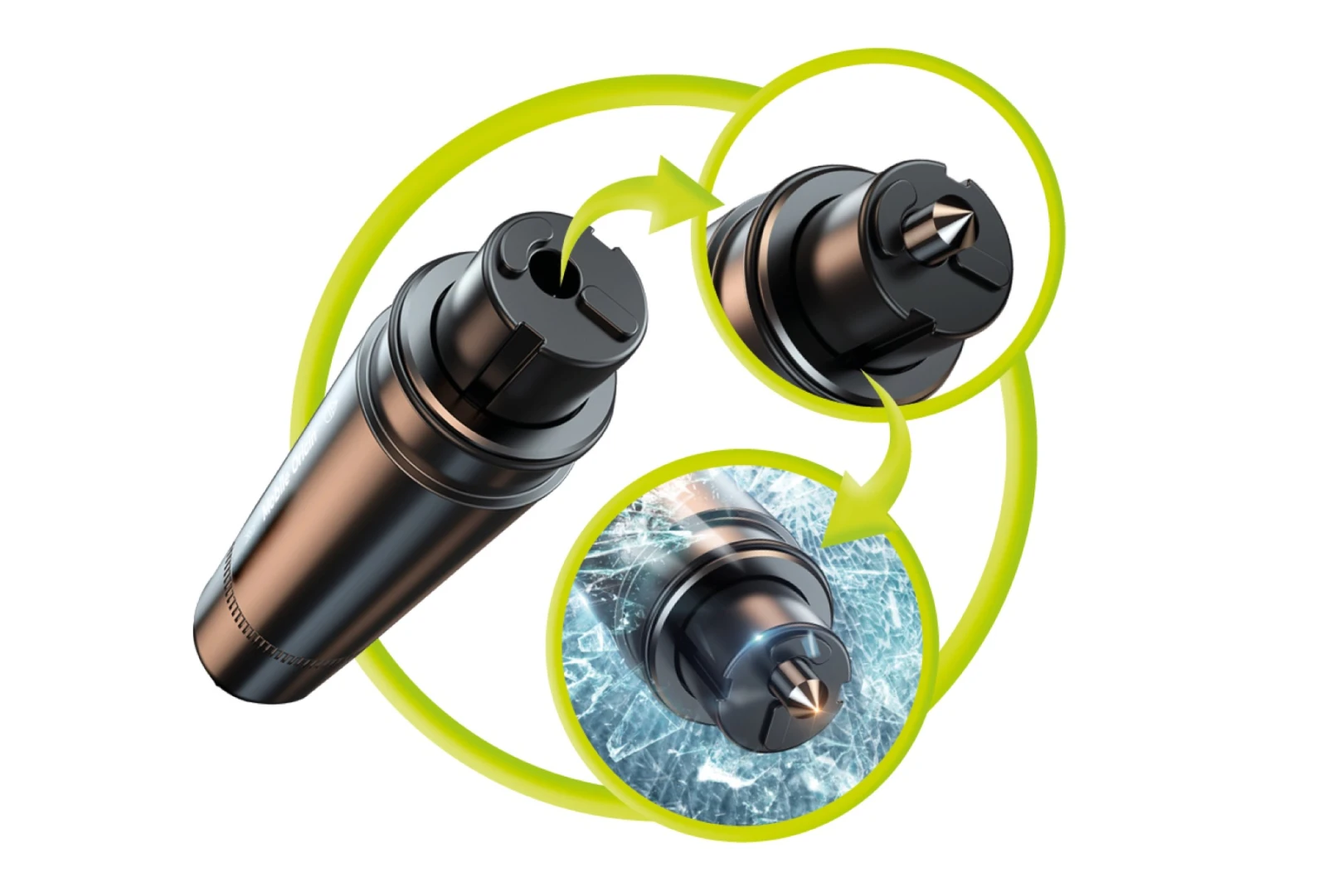 Highly durable tungsten steel tip with spring mechanism. Simply press against the corner of the window and the striker will generate enough force to instantly shatter the tempered side window of a car. Breaking a window poses a serious risk of injury from sharp glass shards. Always protect your eyes and hands. When using a hammer, we recommend protecting your eyes and hands (e.g. with glasses and gloves), if available. If possible, stand firmly and turn your head away from hitting the glass!