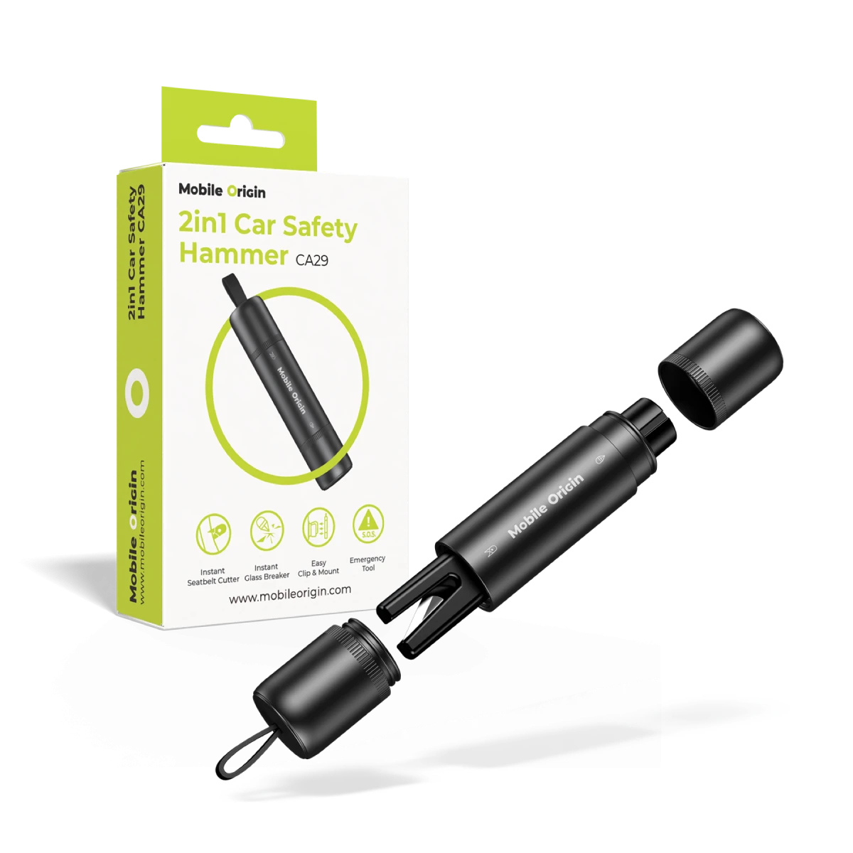 A comprehensive 2in1 rescue tool. The Mobile Origin CA29 integrates a seat belt cutter and a glass breaker into one sleek body. An SOS helper that will get you out of your car quickly in an emergency.