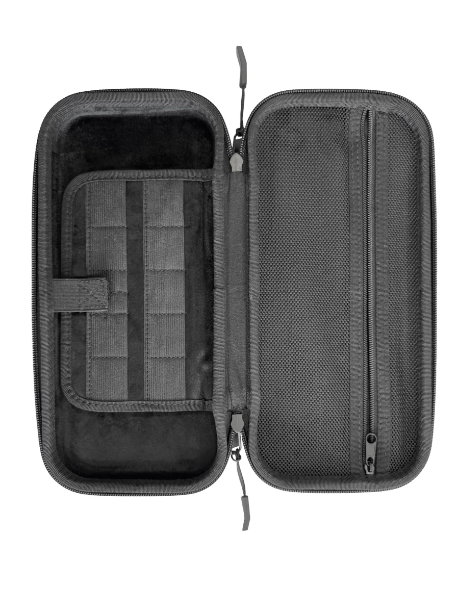 Your console deserves the best. The case is made of high-quality 900D fabric with a water-repellent finish, so you won't be surprised by rain. Inside you will find a "velvet hug" - an ultra-soft lining protects the console body and display from scratches. In addition, it offers dedicated slots for game cards and space for the charging cable, so your gaming setup is always clear.