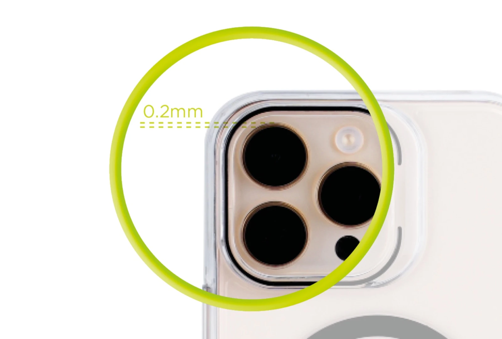 Our lens protector ensures a seamless fit with your phone case, offering robust protection without compromising style or function. With a slim 0.2mm gap, your lens remains shielded while staying compatible with most cases.
