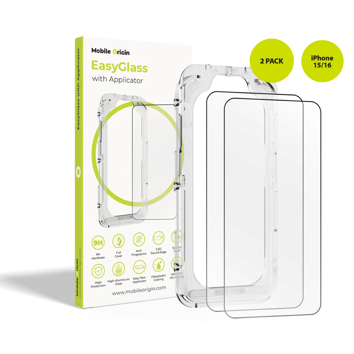 EasyGlass with Applicator iPhone 15/iPhone 16, 2 pack
