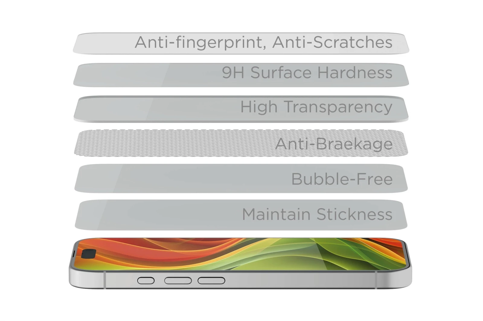 Every millimeter of this glass has a purpose. Six precisely aligned layers form a whole that protects the display on all fronts: