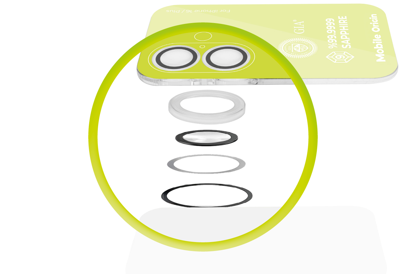 Camera lens protector crafted from 99.99% sapphire glass with a 9 Mohs hardness, offers reliable protection against cracks and scratches.