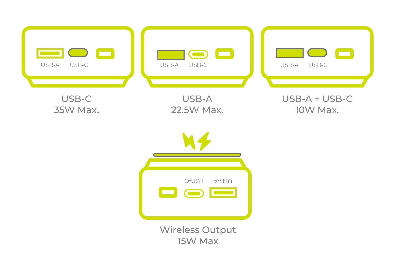 - Total Output Power of Single USB-C: Max. 35W