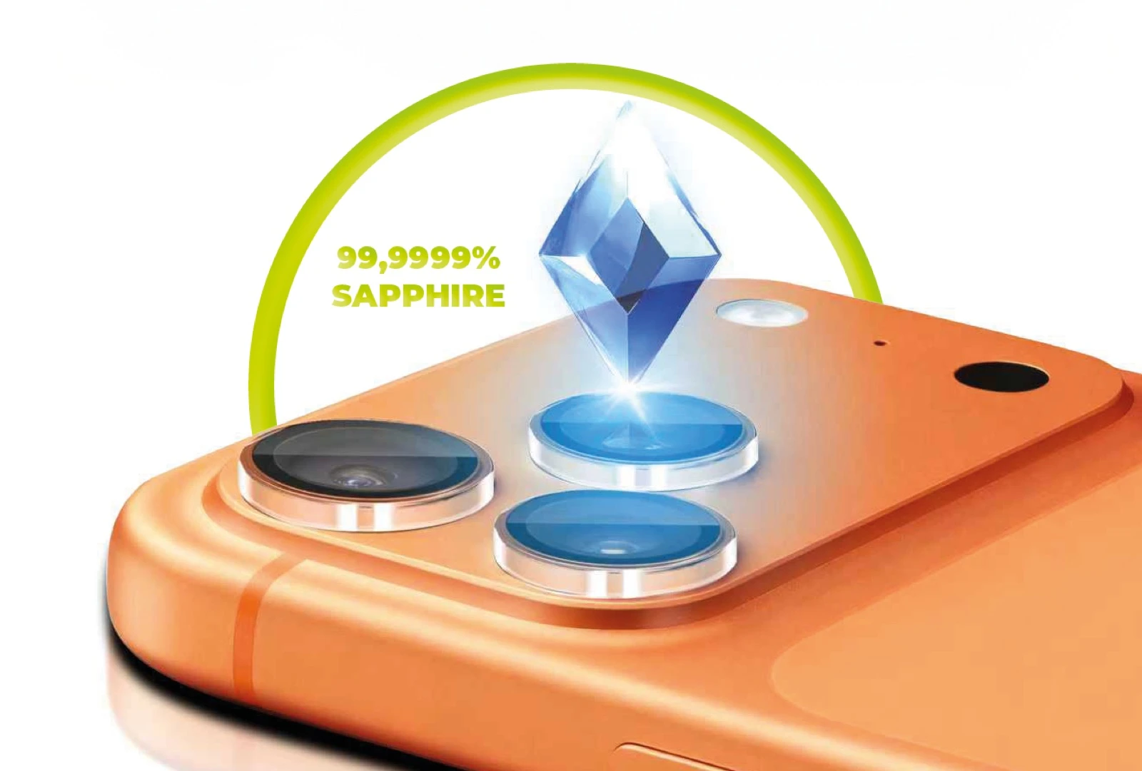 Camera lens protector crafted from 99.99% sapphire glass with a 9 Mohs hardness, offers reliable protection against cracks and scratches.