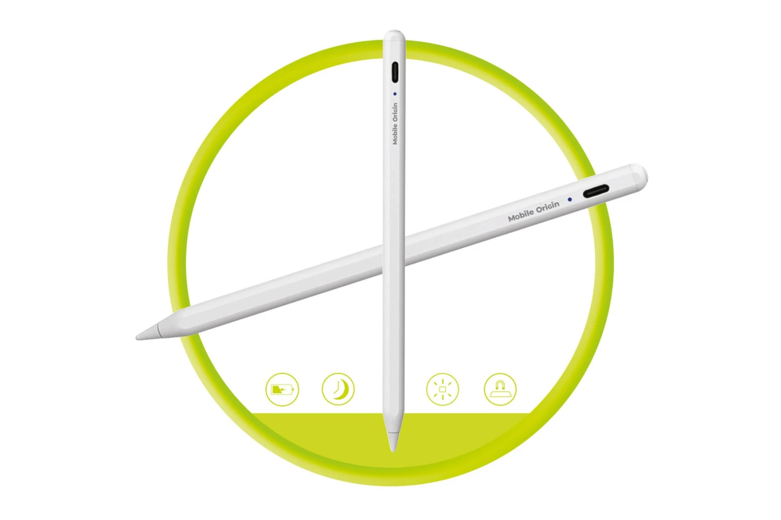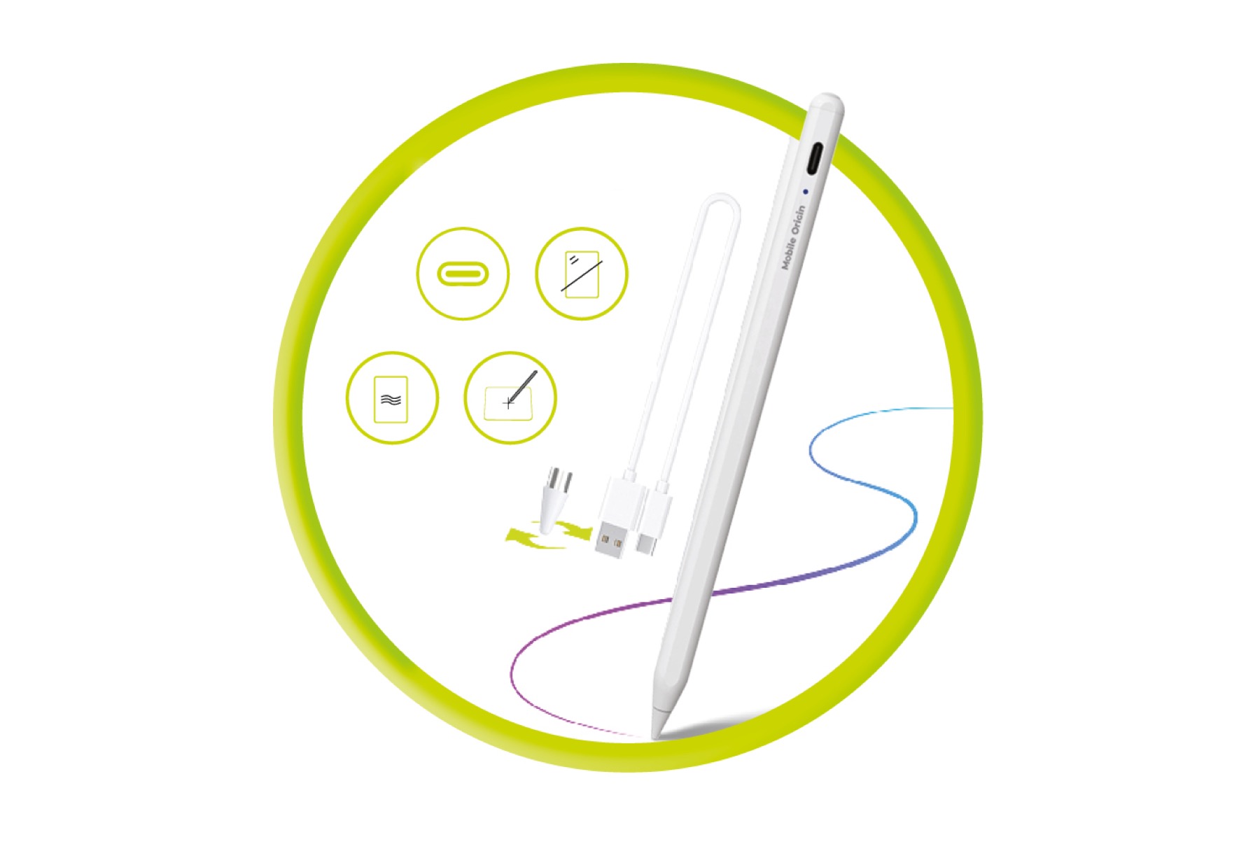 The elegant and precise Mobile Origin PE1 stylus is ideal for writing, drawing and controlling your device. Thanks to the fine 1.5mm POM tip, it responds quickly and smoothly, without delays or skips. Operation is easy - just press the ON/OFF button. The stylus is complemented by an LED status indicator. The pen is charged via a USB-C connector, so it is always ready to use.
